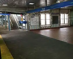 Between 1988 and 2003, SEPTA undertook a $493.3 million reconstruction of the 5.5-mile (8.9 km) Frankford Elevated.[5] Most of Tioga station was completely rebuilt on the site of the original station, though the eastbound platform exit uses a component of the original station. The reconstruction project included new platforms, elevators, windscreens, and overpasses, and the station now meets ADA accessibility requirements.[5] The line had originally been built with track ballast and was replaced with precast sections of deck, allowing the station (and the entire line) to remain open throughout the project.[6]