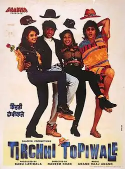 Tirchhi Topiwale is a 1998 Bollywood musical comedy-drama film directed by Nadeem Khan[1] and produced by Babu Latiwala. It stars Chunkey Pandey and Monica Bedi in pivotal roles.[2][3] The film's title was inspired by a song from Tridev (1989).