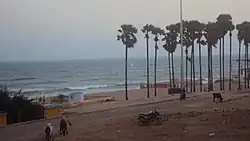Tiruchendur is located on the shoreline overlooking the Gulf of Mannar in the south-eastern part of Tamil Nadu. The suburban villages surrounding the town contain arid, red soil forests that are densely planted with palm trees, cashew plantations, and other crops part of the region.[5]