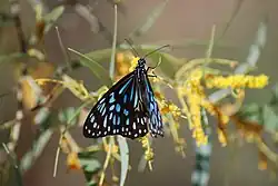 Tirumala hamata, the dark tiger, is a butterfly of the family Nymphalidae. It is distributed from the Philippines to Australia and Pacific oceanic islands such as Samoa. In Australia, the butterflies perform mass migrations to the south in some years. In April 1995, the butterfly made a rare migratory journey to New Zealand, coinciding with the appearance of Hypolimnas bolina on the islands.[2]