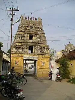 The temple is believed to have been built by the Pallavas of the late 8th century CE, with later contributions from Medieval Cholas and Vijayanagara kings. The temple has three inscriptions on its walls, two dating from the period of Kulothunga Chola I (1070–1120 CE) and one to that of Rajadhiraja Chola (1018-54 CE). A granite wall surrounds the temple, enclosing all the shrines and two bodies of water. There is a 3-tiered rajagopuram, the temple's gateway tower, in the temple.