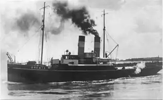 At the yard, NV werf v/h Rijkee & Co. in Rotterdam, the Titan was launched on 13 August 1894. It was towed to Vlissingen where De Schelde installed the engine and boiler. In October the same year it was handed over to the company Zur Mühlen & Co., and put in service. The tug had an engine of a 1000hp and it could load 280 tonnes of coal, giving it a range of 7418 km. It was mainly active in the waters around northwest Europe, but also did assignments to the United States. In 1913 the Titan, together with the Atlas of the same company, towed a dry dock from Texel in the Netherlands to Surabaya in the Dutch East Indies. She did work for the Royal Netherlands Navy as well as for the merchant navy, towing the Gelderland in 1900 and the Evertsen in 1905.[3]
