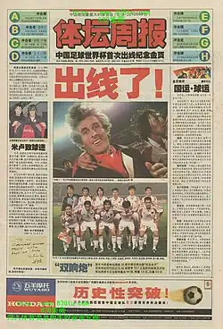 The 2002 World Cup qualifying rounds became the major focus of Titan Sports after the 2000 Summer Olympics, in 2001. China was attempting to qualify; that year average per issue circulation of Titan Sports was 1.6 million.[3] On 7 October 2001, China defeated Oman 1:0 in Shenyang to qualify for the 2002 World Cup, its first time qualifying for the World Cup. The issue of Titan Sports on 8 October 2001 had a record-breaking circulation of 2.6 million. It is still a record in the history of newspaper publication in China.