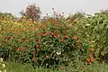Due to its characteristics, it is usually used in hedges to form a background for other smaller plants. It requires poor to average, well-drained soil in an area protected from the wind to prevent its brittle stems from bending or breaking. It is propagated from seeds. Seedlings are planted 30–50 centimeters apart. It requires a sunny plant site and fresh, nutrient-rich soil with plenty of humus. It tolerates drought well, but it still needs water during long periods of drought. Tithonia usually blooms from summer until the first frosts.[5]