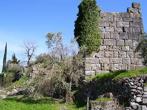 The city, which existed in the time of Plutarch and Pausanias, was a place of some importance, though it had begun to decline for a generation before the time of Pausanias. The latter writer mentions, however, a theatre, the enclosure of an ancient agora, a temple of Athena, and the tomb of Antiope and Phocus.[8] A river flowed by Tithorea, called Cachales (Καχάλης), to which the inhabitants had to descend in order to obtain water.[9] The city also produced a remarkable quality of olive oil that whilst smaller in quantity than that of Attica or Syconia was considered to be superior in quality to that of the Iberian Peninsula and that of Istria.[10]