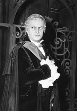 According to Gobbi, he sang the part of Scarpia in Puccini's Tosca "nearly a thousand times".[5] One significant production was the "event of worldwide interest" (as Gobbi himself describes it),[6] Franco Zeffirelli's production of Tosca at the Royal Opera House, Covent Garden in London in February 1964. In a return to that house, Soprano Maria Callas sang the title role, conducted by Carlo Felice Cillario. Act 2 of the production was broadcast live on British television on 9 February 1964[7] in what must be one of the most acclaimed dramatic interpretations of all recorded operatic repertoire. It is now preserved on DVD.