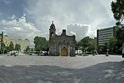 Tlaxcoaque is a plaza located in the historic center of Mexico City which has given its name to both the 17th-century church that is on it and the blocks that surround it. Historically this plaza and the church that sits on it have marked the southern edge of Mexico City, and today it is on the border of the historic center and Colonia Obrera.[1][2] The church and plaza are somewhat isolated from the rest of the center due to the construction of wide streets, such as 20 de Noviembre and Fray Servando Teresa de Mier, that separate them from the surrounding buildings.[3] Another notable building in this area is the police surveillance station, which was infamous in the 1970s as a place where detainees were tortured. This stopped after the 1985 Mexico City earthquake exposed handcuffed bodies which had evidence of torture on them.[4] Today, the area around this plaza is semi-deserted outside of work hours and is considered to be a high-crime area.[2] The church itself has experienced break-ins.[5]