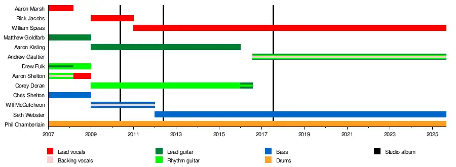 - Aaron Shelton - lead vocals (2008-2009), rhythm guitar, backing vocals (2007-2008)