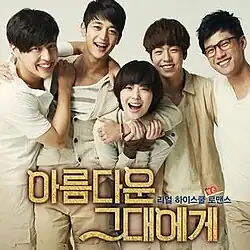 To the Beautiful You (Hangul: 아름다운 그대에게 OST) is the original soundtrack album to the 2012 South Korean television drama series of the same name which aired from August 15 to October 4, 2012 on SBS for 16 episodes. The album contains a total of ten soundtracks, eight of which were released as four A-side and B-side digital singles prior to the full release of the album on September 19, 2012.[1] The album was produced by record label agency S.M. Entertainment while its artists lend their voices for the songs. Additionally, the original score of the series was also included in the album.