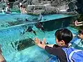 The first aquarium was a "handmade aquarium" with a 200 tsubo pond divided into four sections and stocked with penguins, sea lions, sea bream, and yellowtail, etc. The aquarium was marketed as having a guide.[6][7][8][9]