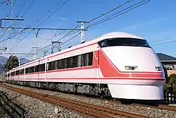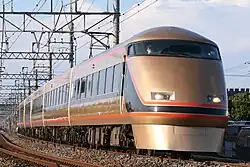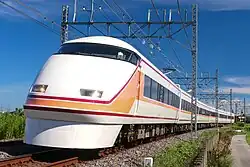 The Tobu 100 series (Japanese: 東武100系, romanized: Tōbu 100-kei), branded Spacia (スペーシア), is a limited express electric multiple unit (EMU) train type operated by the private railway operator Tobu Railway in Japan since 1990. The trains are used on Kegon, Spacia Nikko, Kinu, and Spacia Kinugawa services to Nikkō and Kinugawa-Onsen.[2]