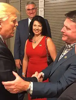 During his time in Congress, Rokita voted in line with President Donald Trump 90.3% of the time.[95] During the Republican primary for the 2018 United States Senate election in Indiana, Rokita earned the support of the chair and vice chair of 2016 Trump campaign in Indiana.[96]