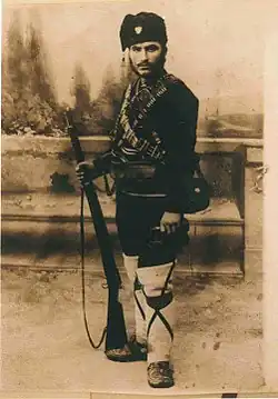 Krstić was born in the village of Algunja in the Kosovo Vilayet of the Ottoman Empire (present-day North Macedonia). Algunja was surrounded by Albanian-inhabited villages of Čukarka, Suševo and Mutilovo; Krstić had even before joining the organized Chetnik action, jumped into the region from Vranje, assassinating known zulumćari (persecutors of Christians). On April 18, 1902, together with Krastyo Kovachev, he joined the Bulgarian cheta of the Supreme Macedonian-Adrianople Committee with a commander Sotir Atanasov, which operated in Kriva Palanka area. With this company he moved later to the Bulgarian town of Kyustendil. He and his comrades were interned under Ottoman pressure by the Bulgarian authorities in Varna and later in Kavarna. From there, Krastev left for Russia and then settled in Belgrade, Serbia. He himself became one of the regional vojvoda (duke) and worked closely with vojvoda Petko Ilić. After the Battle of Stratsin against a Bulgarian squad in March 1912, in which Petko Ilić died, Krstić succeeded him as the unit's commander. He fought in the great battle at Šumata Trnica on March 21, 1912, in which eight Serbian rebels were killed,[1] including Svetozar Mihajlović-Purca from Tuzla.[2]