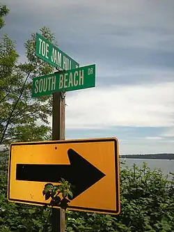 ![]() Sign on Toe Jam Hill Road, overlooking Puget Sound | |