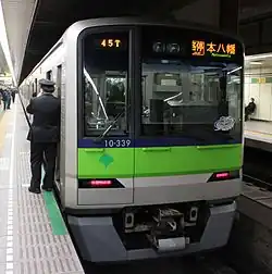 The Toei 10-300 series (都営10-300形, Toei 10-300-gata) is an electric multiple unit (EMU) train type operated by the Tokyo subway operator Tokyo Metropolitan Bureau of Transportation (Toei) on the Toei Shinjuku Line in Tokyo, Japan, since 2005.[2]