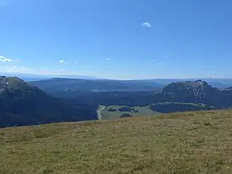 ![]() Togwotee Pass from north, from Breccia Peak, Two Oceans Mountain on the right | |
