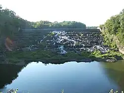 Lake Nockamixon is the most visited spot along the creek's course. Boating is the most popular activity, and its main marina holds dozens of sail boats, and rents out smaller boats to visitors, too. Fishing is also a popular activity, and a fishing pier has been set up of the shore of the lake. Visitors can also hike or bike ride around the area, hunt in certain areas, and even camp if planning to stay for more than one day. On the third weekend in March and the first weekend in November, when water levels are sufficient, the Pennsylvania Department of Conservation and Natural Resources schedules water releases from the dam at Lake Nockamixon.[6] This turns Tohickon Creek into a whitewater course,[7] and boaters can manage their ways the entire route from the lake to the Delaware River.