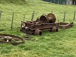 There were several sawmills, milling trees such as rimu.[30] Bauchop's mill burnt down in 1912[31] and narrowly escaped another fire in 1917.[32] There were 3 timber mills in 1921.[33] Some of the sawmills were linked to their bush by tramways, between at least 1902[34] and 1925.[35] One extended 2.5 km (1.6 mi) from the railway station towards Waikawa.[36]