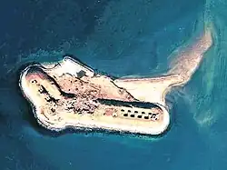 An important feature of the Tokyo Bay Fortress was a series of three artificial islands built between Cape Futtsu and Cape Kannonzaki at the entrance to Tokyo Bay in the 1910s. Equipped with 15-cm guns, this enabled the Tokyo Bay Fortress to cover the entire span of Tokyo Bay within firing ranges and provided a second line of defense against any ships which might have breached the gun emplacements at the entrance to Tokyo Bay. The third of these islands (the one closest to Cape Kannonzaki) was rendered unusable by land subsidence caused by the 1923 Great Kantō earthquake. It remnants posed an ongoing threat to navigation, and were removed from 2000 to 2007.