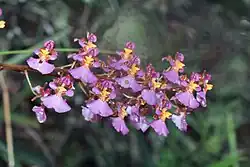 Species in the genus are pollinated by oil-collecting bees of the genus Centris. Instead of producing oils as a reward for their pollinators, Tolumnia species instead mimic the oil-producing flowers of Malpighiaceae species. Flowers are self-incompatible. Fragrance strength can vary greatly even within a species.[4][5][6]