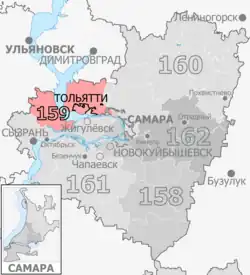 Tolyatti constituency (No.159[a]) is a Russian legislative constituency in Samara Oblast. Until 2007 the constituency covered the whole city of Tolyatti but since 2016 it includes only parts of Toyatti and surrounding rural areas.
