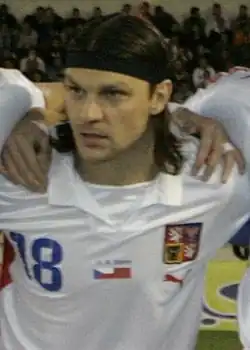 Tomáš Ujfaluši (Czech pronunciation: [ˈtomaːʃ ˈujfaluʃɪ], born 24 March 1978) is a Czech former professional footballer. He operated as either a central defender or a right-back.[4] Initially beginning his career with SK Sigma Olomouc in 1996, he played in Germany (four years), Italy (four), Spain (three), and Turkey (two) – winning six major titles between Hamburger SV, Atlético Madrid and Galatasaray – respectively. Ujfaluši earned 78 appearances for the Czech Republic, representing the country at the 2006 World Cup and two European Championships.[5]