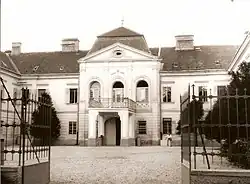 He built the three-winged manor house with a genuine courtyard on the edge of the village of Fél, today Tomášovo, on an eminence named Majorháza – Estate, rising from amidst fertile lowlands and surrounded by meadow forest and the meandering river bed of the Little Danube.[1] The vast English landscape garden, which originated from the meadow forest and still surrounds it today, became a component of the estate.