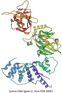 - ^ Ochi T, Gu X, Blundell TL (2013). "Structure of the catalytic region of DNA ligase IV in complex with an artemis fragment sheds light on double-strand break repair". Structure. 21 (4): 672–679. doi:10.1016/j.str.2013.02.014. PMC 3664939. PMID 23523427.