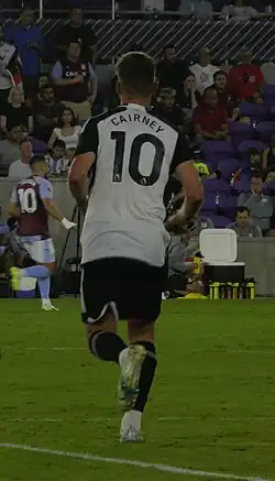 Ahead of the 2017–18 season, Cairney signed a one-year contract extension with the club, keeping him until 2021.[108] He was named the new captain for the new season, succeeding Scott Parker.[109] After playing in the season opener, a 1–1 draw against Norwich City, Cairney suffered an injury ahead of the friendly match against Reading.[110] It wasn't the first time he suffered an injury, which occurred during the pre–season friendly.[111] After missing two matches, Cairney returned to the first team, in a 1–0 loss against Sheffield Wednesday on 19 August 2017.[112] In January 2018, Fulham rejected offers of £15 million and £18 million from West Ham United for Cairney.[113][114]