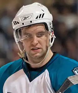 ![]() Cavanagh with the Worcester Sharks in 2008 | |||