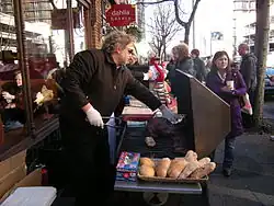 ![]() Douglas at the grill in front of the Dahlia Lounge during a pre-Thanksgiving food giveaway in 2008 | |
