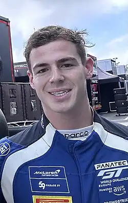 Tom Gamble (born 7 November 2001) is a British racing driver who currently races for Aston Martin THOR Team in the FIA World Endurance Championship. He is a Ginetta Junior champion, a BRDC British Formula 3 race winner, and has previously competed in the FIA World Endurance Championship.[2][3] He won the Autosport BRDC Award in 2018,[4] for which he received a prize Formula One test with McLaren.[5][6] Five years later, in 2023, Gamble joined McLaren as a factory driver.[7]