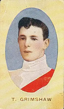 ![]() Cigarette card of Grimshaw in 1910 | |||