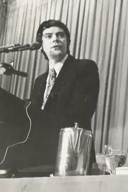 LID and SDS split in 1965, when SDS voted to remove from its constitution the "exclusion clause" that prohibited membership by communists, against Kahn's arguments.[37][38] The SDS exclusion clause had barred "advocates of or apologists for" "totalitarianism".[39] The clause's removal effectively invited "disciplined cadre" to attempt to "take over or paralyze" SDS, as had occurred to mass organizations in the thirties.[40] Afterward, Marxism Leninism, particularly the Progressive Labor Party, helped to write "the death sentence" for SDS.[40][41][42][43] Nonetheless Kahn continued to argue with SDS leaders about the need for accountable leadership,[44] about tactics, and about strategy.[30] In 1966, Kahn attended the Illinois Convention of SDS, where his forceful arguments and delivery overwhelmed and were resented by the other activists;[30] Kahn was then 28 years old.