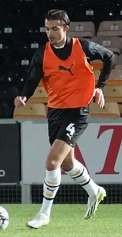 He scored his first career goal on 13 August 2024, in a 3–2 defeat at Barrow in the EFL Cup.[33] Moore played him on the right of a back three against Swindon Town on 28 September and played well, being given to room to allow his long passes to create chances.[34] He was named on the EFL Team of the Week for his performance, having made six key passes, won six aerial duels and collecting an assist.[35][36] He remained a key player at wingback following injury to Kyle John.[37] In November he started two games in central midfield and another two on the right of the back three, winning praise for his defensive performance in the 1–1 draw with local rivals Crewe Alexandra.[38] He was sent off for violent conduct following a clash with Antoni Sarcevic in the Boxing day defeat at Bradford City.[39] He returned to the starting line-up the following month, by which point he had played in nine different positions – right and left back, right and left-wing back, right and left of a back three, central midfield, right of a midfield four and right of a front three – during his Vale career.[40] He was again shown a straight red card on 1 February after a high challenge on Ashley Hunter in a 2–1 home win over Accrington Stanley.[41] He dislocated his shoulder in a win at Crewe Alexandra at the end of March and was ruled out for the rest of the 2024–25 season.[42] He played 28 league games in the campaign,[43] helping the team to secure an automatic promotion place.[44] He was released upon the expiry of his contract.[45]