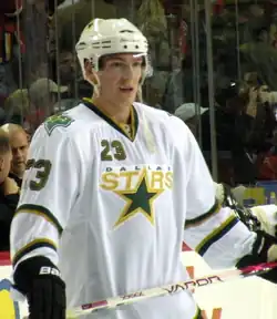 In 2008–09, he made his NHL debut with the Dallas Stars, but mostly played for Timrå IK of the SHL.[1] He also recorded his first career National Hockey League goal with the Stars on December 12, 2008, in only his second NHL game, by scoring in a 3–1 victory over the Detroit Red Wings.[2]
