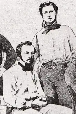 After leaving Rugby, and with a steady supply of money from his father, Wills roamed Britain in pursuit of cricketing pleasure. Regarded as "one of the most promising cricketers in the kingdom",[52] he played with royalty, made first-class appearances for the MCC, Kent County Cricket Club, and various Gentlemen sides, and also fell in with the I Zingari—the "gypsy lords of English cricket"—a club of wealthy amateurs known for their exotic costumes and hedonistic lifestyles.[53] Against Horatio's wishes, Tom, having failed to matriculate, did not continue his studies at Cambridge, but played for the university's cricket team (as well as Magdalene College), most notably against Oxford in 1856 when rules barring non-students from playing in the University Match were ignored, Cambridge claiming to be "one man short".[54] In June, Wills played cricket at Rugby School for the last time, representing the MCC alongside Lord Guernsey, the Earl of Winterton, and Charles du Cane, governor-to-be of Tasmania.[55] Following a month of cricket in Ireland, Wills, at the behest of Horatio, returned to England to prepare for his journey home to Australia.[56]