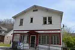The post office was established as Wells on August 20, 1886, and named for its first postmaster, Richard M. Wells, according to Kentucky Place Names by Richard M. Rennick. It was closed in 1894, but reopened on November 4, 1898, as Tomahawk for The Tomahawk News, a newspaper then being published in Inez. It now has an estimated population of 1,000, based on voter registration in the Tomahawk precinct. The post office survived in 1975 when the U.S. Postal Service closed nearby offices in Milo and Davisport. In 2012, as part of the Postal Service's nationwide reorganization, the full-time post office building at the forks of Rockcastle Creek and Stafford Fork was closed. But the community retained its name, Zip Code (41262) and some services after it was designated as Kentucky's first Village Post Office. As such, the facility provides free-standing post-office boxes and a mail drop box beside a convenience store, which is authorized to sell stamps and delivery envelopes.