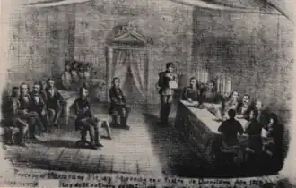 Mejía was tried by a court martial at which he was defended by lawyer Prospero Vega. The defense brought up that previously Mejía had been merciful when capturing the enemy, sparing general Mariano Escobedo, and Jeronimo Trevino, but the court still sentenced Mejía to death.[38] Mejía, Maximilian, and Miramon were shot by firing squad at dawn on 19 June 1867.