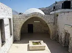 Joseph's Tomb (Hebrew: קבר יוסף, Qever Yosef; Arabic: قبر يوسف, Qabr Yūsuf) is a funerary monument located in Balata village at the eastern entrance to the valley that separates Mounts Gerizim and Ebal, 300 m (980 ft) northwest of Jacob's Well, on the outskirts of the West Bank city of Nablus.[1] It has been venerated throughout the ages by Samaritans, for whom it is the second holiest site; by Jews; by Christians; and by Muslims, some of whom view it as the location of a local sheikh, Yusef al-Dwaik[2][3][4][5][6][7] or Dawiqat, who died in the 18th century.
