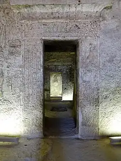 The Tomb of Panehsy (also Panehesy, Panhesy) is a sepulchre in Amarna, Upper Egypt. It was erected for the noble Panehsy who bore the titles the First servant of the Aten in the house of Aten in Akhet-Aten, Second prophet of the Lord of the Two Lands Neferkheprure-Waenre (Akhenaten), the sealbearer of the King of Lower Egypt, Overseer of the storehouse of the Aten in Akhetaten, Overseer of cattle of the Aten in Akhet-Aten.[1][2]