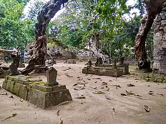 Another site located within the same complex as this cemetery is Sendang Maya.[14] This site, consisting of two ponds, is located to the northeast of the tomb and functions as a rainwater reservoir.[15] The pond inside the surrounding wall measures approximately + 3,5 meters x 5 meters, while the one outside the surrounding wall measures about + 6 meters x 6 meters.[16] The sendang is surrounded by a brick wall similar to that of the Tomb of Ratu Mas Malang, with a height of about + 3 meters and a thickness of 2,1 meters.[8] Surakso Sardjito, the caretaker of the tomb, who was interviewed by Rohman, stated that the sendang was initially intended to be used by Amangkurat I to bury Mas Malang, but the ground kept releasing water when it was dug.[16] Eventually, Amangkurat I buried the woman in the same cemetery complex as Dalang Panjang.[15]