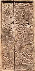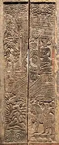 The Tomb of Wirkak (Sogdian: wyrkʾk), in Chinese commonly referred to as Tomb of Master Shi (Chinese: 史君墓; pinyin: Shǐ Jūn Mù; Wade–Giles: Shih3-Chün1 Mu4), is the grave of the Sogdian sārtpāw Wirkak and his wife Wiyusi, dating from 580 AD (Northern Zhou dynasty). The tomb was discovered in 2003 in the east of Jingshang village in Daminggong township, Weiyang District, Xi'an, and excavated between June and October in the same year.[2] It is especially significant for the rich content of the reliefs on the stone structure contained in the tomb and a bilingual epitaph.[3] Sogdian tombs in China are among the most lavish of the period in this country, and are only slightly inferior to Imperial tombs, suggesting that the Sogdian Sabao were among the wealthiest members of the population.[4]