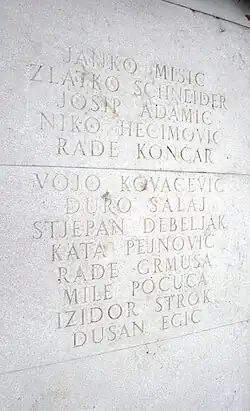 • Rade Končar (1911–1942), First secretary of the CC of the Communist party of Croatia (CPC), commander of the Operational party council for Croatia and People's Hero of Yugoslavia