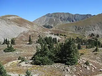 Tomichi Pass (elevation 11,962 feet (3,646 m)) is a high mountain pass in the Sawatch Range of the Rocky Mountains of Colorado. It is located in Gunnison County and in the Gunnison National Forest. The pass divides the watersheds of Middle Quartz Creek to the north and Tomichi Creek to the south.[1][2]
