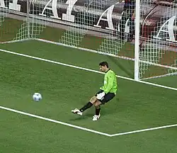 Butina was able to keep his place as Croatia's first-choice goalkeeper during the 2006 World Cup qualifying and started eight out of ten matches, only being replaced by Pletikosa for the two matches that the team played in September 2005. Although Butina was part of Croatia's 23-man squad at the 2006 FIFA World Cup finals in Germany, he lost his place in the starting lineup to Pletikosa and remained an unused substitute in all of the team's three group matches.[10] He announced his retirement from the national team a few weeks after the tournament, citing his desire to concentrate on club career and to spend more time with his family.[11]