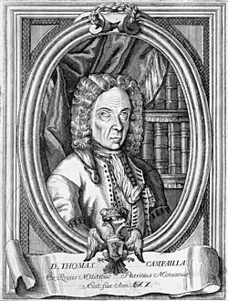 Tommaso Campailla was born in Modica, near Syracuse, in 1668. His family belonged to the local nobility.[1] At sixteen he was sent to Catania to study law. He employed his leisure hours in the study of literature, philosophy, science, astronomy, and physics.[1] He studied both neo-Scholastic and Cartesian philosophy, and adopted a mechanical view of the universe.