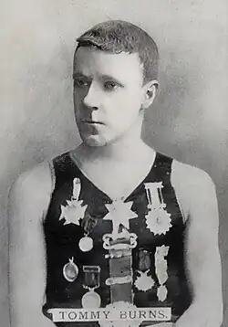 - ^ a b "Tommy Burns: Athlete from England". Kendalleville Standard. 30 October 1896. p. 7. Retrieved 29 July 2021.