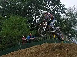 Tommy Searle (born 13 June 1989) is an English professional motocross and supercross racer. He competed in the Motocross World Championships from 2005 to 2008 and competed in the AMA Motocross Championships in 2009 and 2010.[1][2] He returned to the Motocross World Championships from 2011 to 2019.[1] Searle is a three-time MX2 World vice-champion & a four-time British Motocross Champion.[1] His fourteen MX2 Grand Prix victories make him Britain's most successful MX2 rider and ranks third in total victories across all classes to multiple world champions David Thorpe and Jeff Smith.[3]