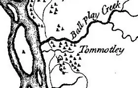 During the American Revolution and Cherokee–American wars, most of the Overhill towns were destroyed by American forces. Because Tomotley was located at a strategic ford along the Little Tennessee, it was the first of the Overhill towns to be captured in 1776 by William Christian's expedition.[8] When John Sevier invaded the valley three years later, he reported that Tomotley was still in ruins.[4]